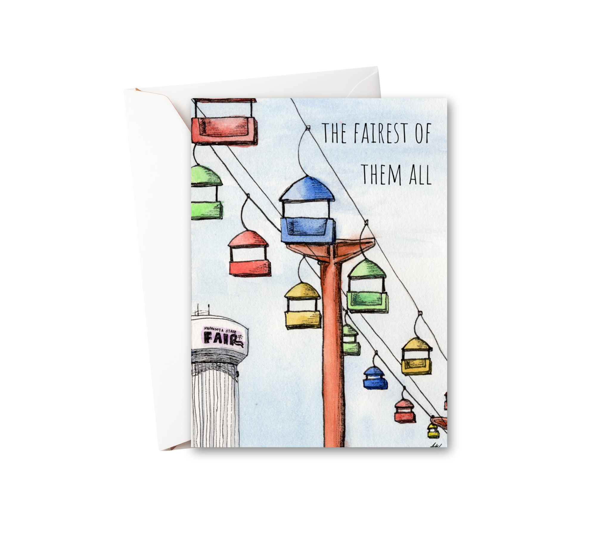 This is a fine art print of a work of art inspired by the sky ride at the Minnesota State Fair, otherwise known as the Great Minnesota Get Together. This fine art print is printed on archival-quality paper. The original painting was drawn and painted by Alyssa Whetstone, and each print is made to order. The print and packaging include a stamped verification label on the back stating it is a fine art print by Alyssa Whetstone. The print is packaged neatly in a clear plastic sleeve with a stiff backing board. It does not include a matte or frame. Check out many other drawings and paintings available to create a memorable collection or wall collage. Ā© 2021 Alyssa Whetstone Art. Purchase of this product does not transfer rights. Copyright of the images remains with the creator.
