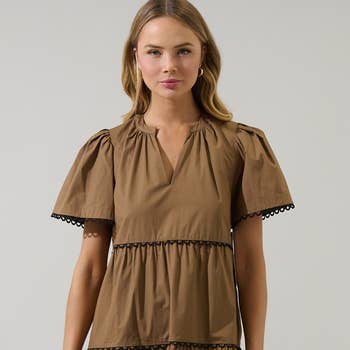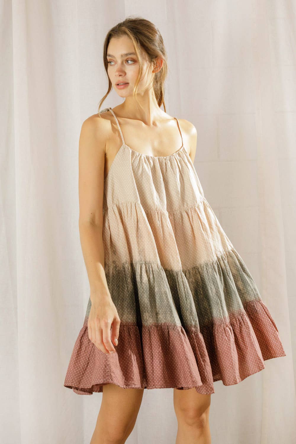 Made in China Aesthetic: Active and Preppy Care Instructions: Hand wash Dress Style: A-line Embellishment: Ruffles Fabric: 51%Viscose 22%Polyester 22%Nylon Fit: Contemporary and Missy Neckline: Collared Occasion Theme: Everyday Occasion: Everyday and Resort / Vacation Pattern: Solid Season: Capsule Skirt & Dress Length: Mini Sleeve Length: Sleeveless Product Language: English