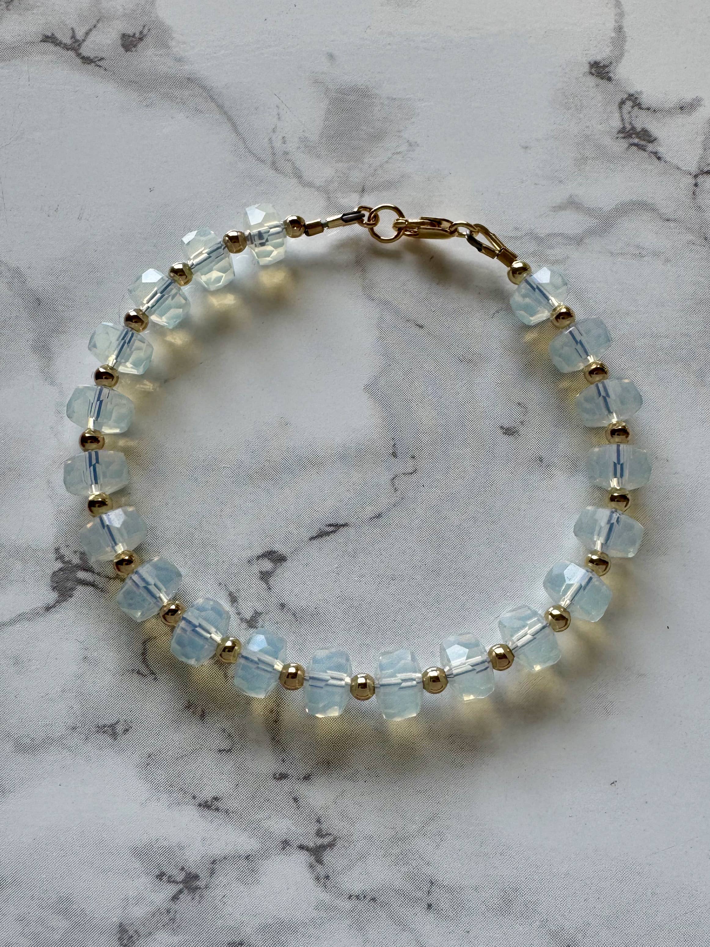 Blue Angelite Beaded Gold Filled Bracelet