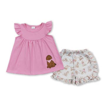 Baby Girls Pink Dog Tunic Top Ruffle Shorts Clothes Sets