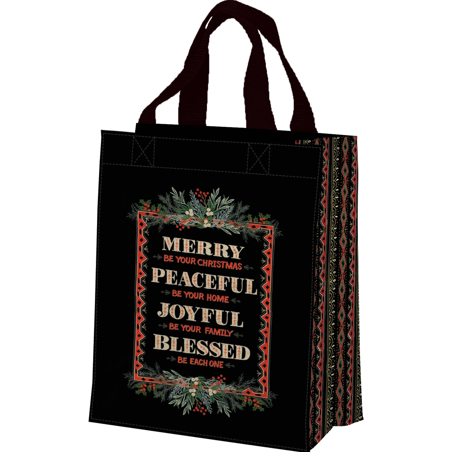 Bring the Trust in the LORD Black Reusable Shopping Tote Bag to the store with you, and let it be a reminder of the LORD's endless provision and grace; trusting the Lord is a steadfast anchor. White typographical design with a diamond-shaped frame, Black polypropylene, Trust in the Lord, Proverbs 3:5, Reusable tote, Stitched for durability, Non-woven, Eco-friendly, Collapsible, Carry handles, Size: 14.6" x 13.75" x 6" (371 x 349 x 152mm)