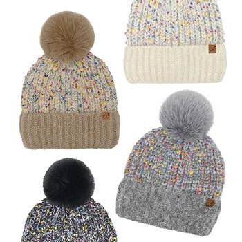 Wholesale ,.SI-25271 Speckled Pom Pom Beanie