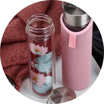 The double-walled stainless steel thermo drinking bottle keeps your hot drinks warm for many hours – cold drinks stay refreshingly cool in summer. Exclusive designs with relief structure make the LEEZA bottles a tactile experience and an absolute eye-catcher. LEEZA is the optimal companion throughout the day: on hikes, bike tours, indoor sports, yoga, at work, university, camping, or school. The practical handle is perfect for transport, and the foldable lid (sports cap) can be easily opened and closed with one hand. Thanks to the ultra-fine laser-perforated 2-piece sieve, you can prepare both tea and coffee directly in the LEEZA. In your infused water creations, all flavor-enhancing parts remain in the bottle. The closure is leak-proof; for safety, we recommend upright transport. LEEZA is not suitable for microwave/dishwasher use.