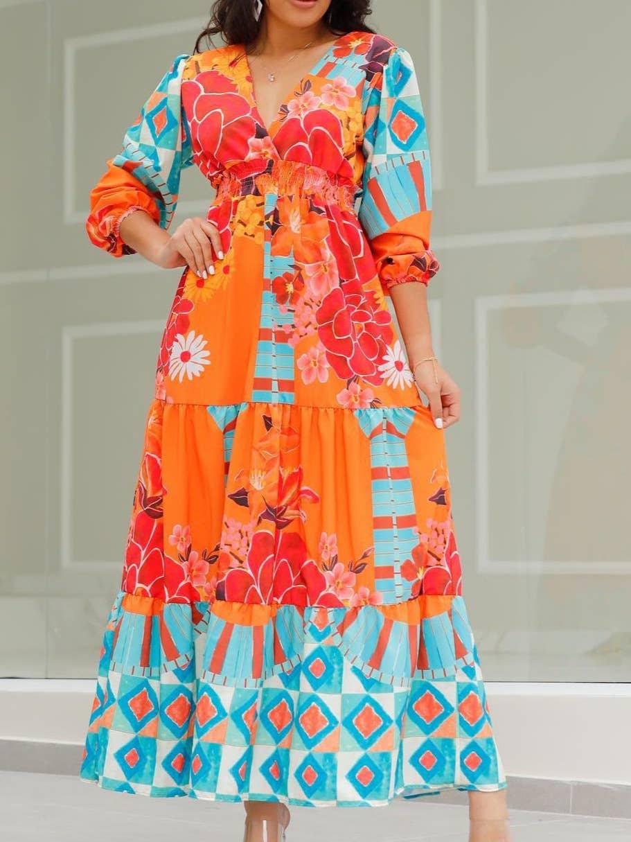 * Style No.: OD930XH1-1 Off The Shoulder Balloon Long Sleeve Flare Maxi Dress