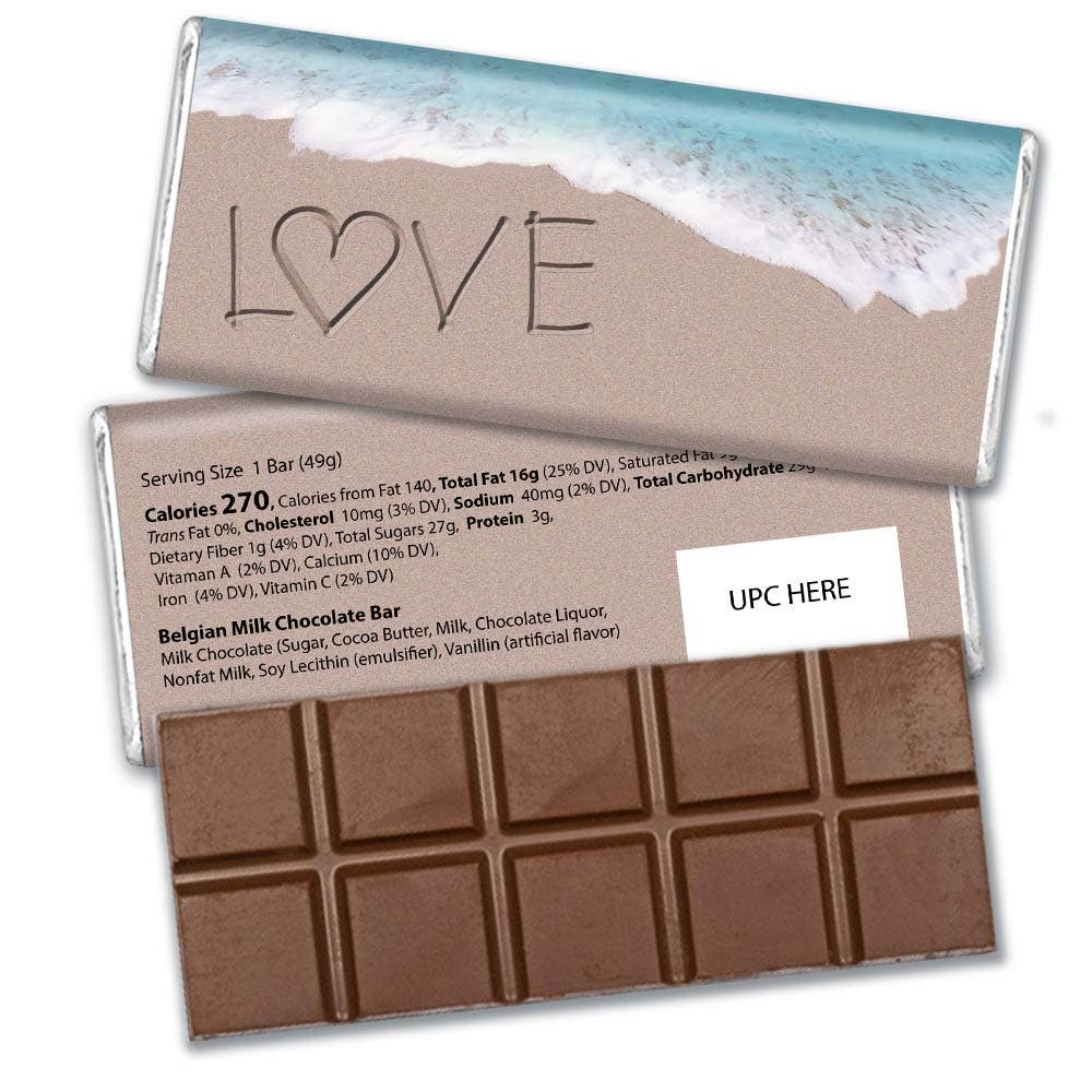 •Includes: completely assembled 1.6oz Belgian Milk Chocolate Bar with Silver Foil and Wrapper •Dimensions: 5 1/2" x 2 1/4" x 1/4" •Weights: 1.6oz Belgian Milk Chocolate Bar