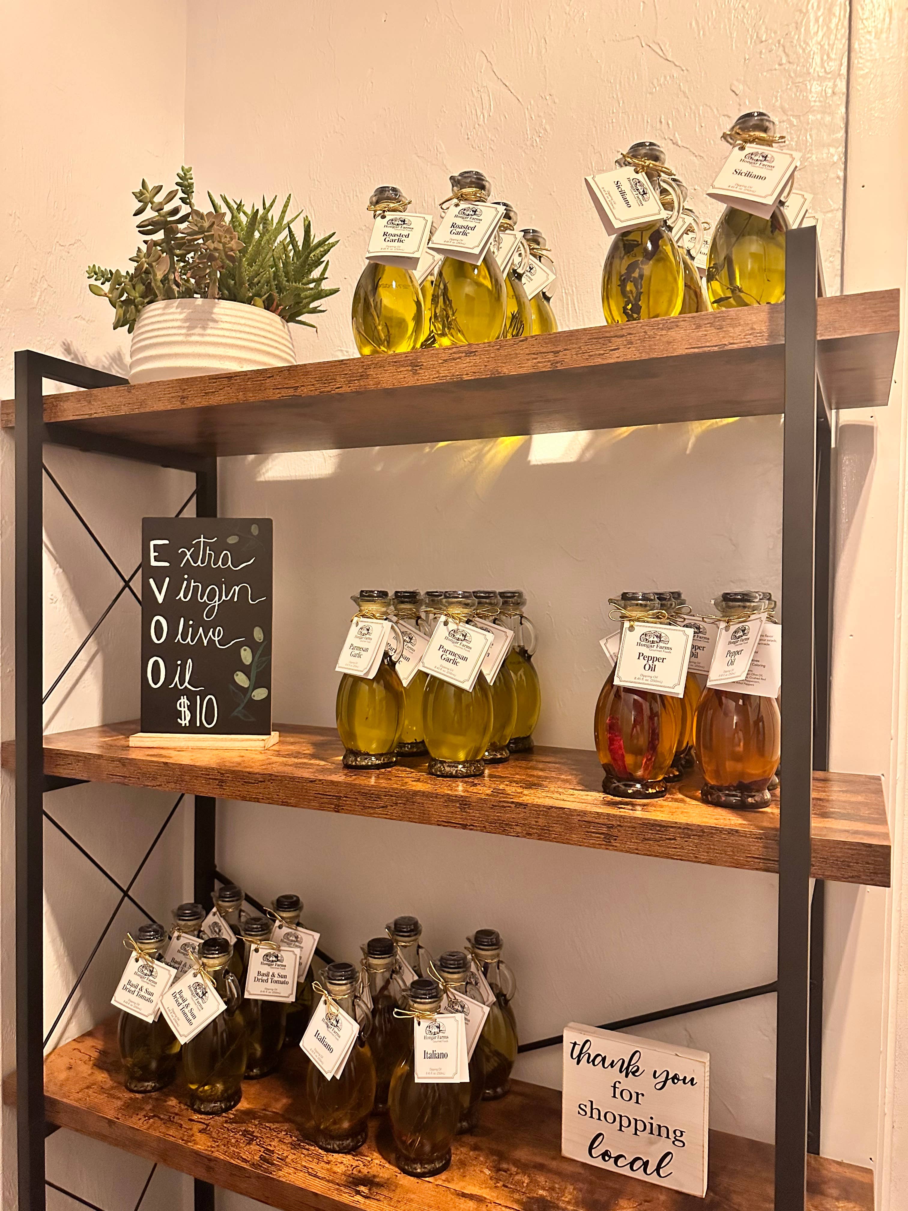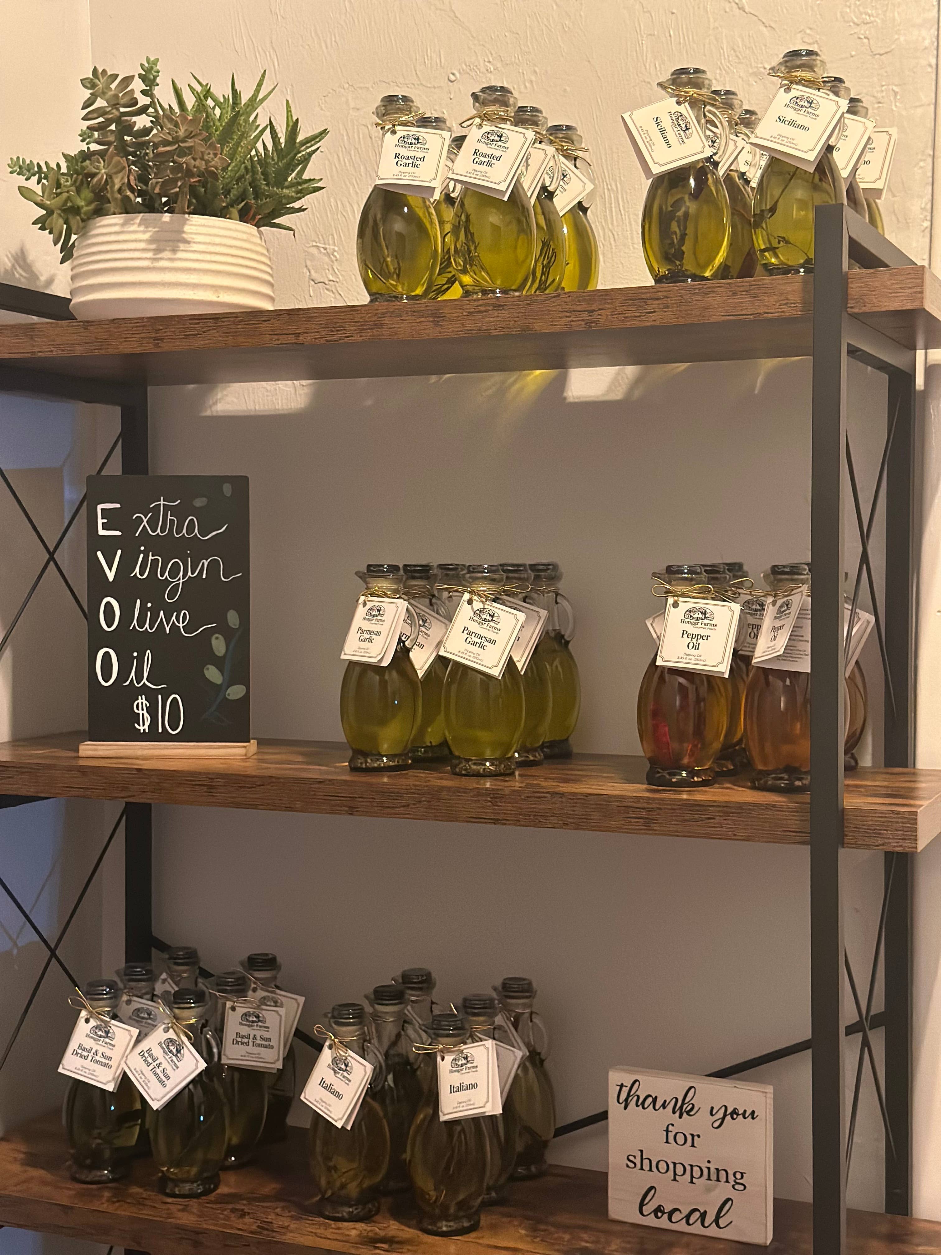 Hongar Farms Roasted Garlic Infused EVOO Blend bursts with bright, natural garlic flavor, crafted from all-natural ingredients. This versatile oil blend enhances roasting veggies, chicken, fish, and more with rich, savory notes. Packaged in a convenient 250mL glass Cruet bottle with handle and lip for easy pouring, it’s perfect for everyday cooking or gifting. Specs: -Fluid Size: 250 mL (8.45 fl oz) -Height: 7.5 in | Width: 2.25 in | Depth: 2.25 in -Weight: 0.8 lbs -Color: Golden with Roasted Garlic Aroma -Taste: Robust, Savory, Aromatic Usage: Celebrations, Memorial Day, Easter, Mother’s Day, Spring & Summer Parties, Dinner Parties, Grilling, Charcuterie Boards, Healthy Cooking Oils, Italian Cooking, Gift Giving Notes: All Natural, No Preservatives, Small Batch, Made in USA (Georgia), Fresh Ingredients, Infused Cooking Oil, Artisan Crafted, Gourmet Quality, Sustainably Sourced