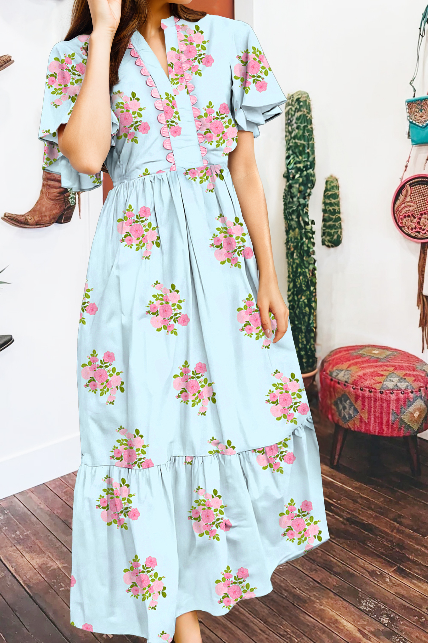 Are you ready to have some fun in our Darlene Dress! This stylish dress features a flawless Aztec print that will make you stand out from the crowd. With long sleeves and a convenient belt, it's not only fashionable but also comfortable. A must-have for any fashion-forward individual! * 100% Polyester. * Sizes S-3XL, true to size. * V-neck. Western wholesale clothing. Sizing chart is located in the pictures.