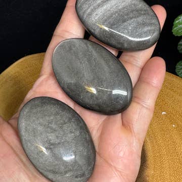 3 pc SIlver sheen obsidian palm stone F369