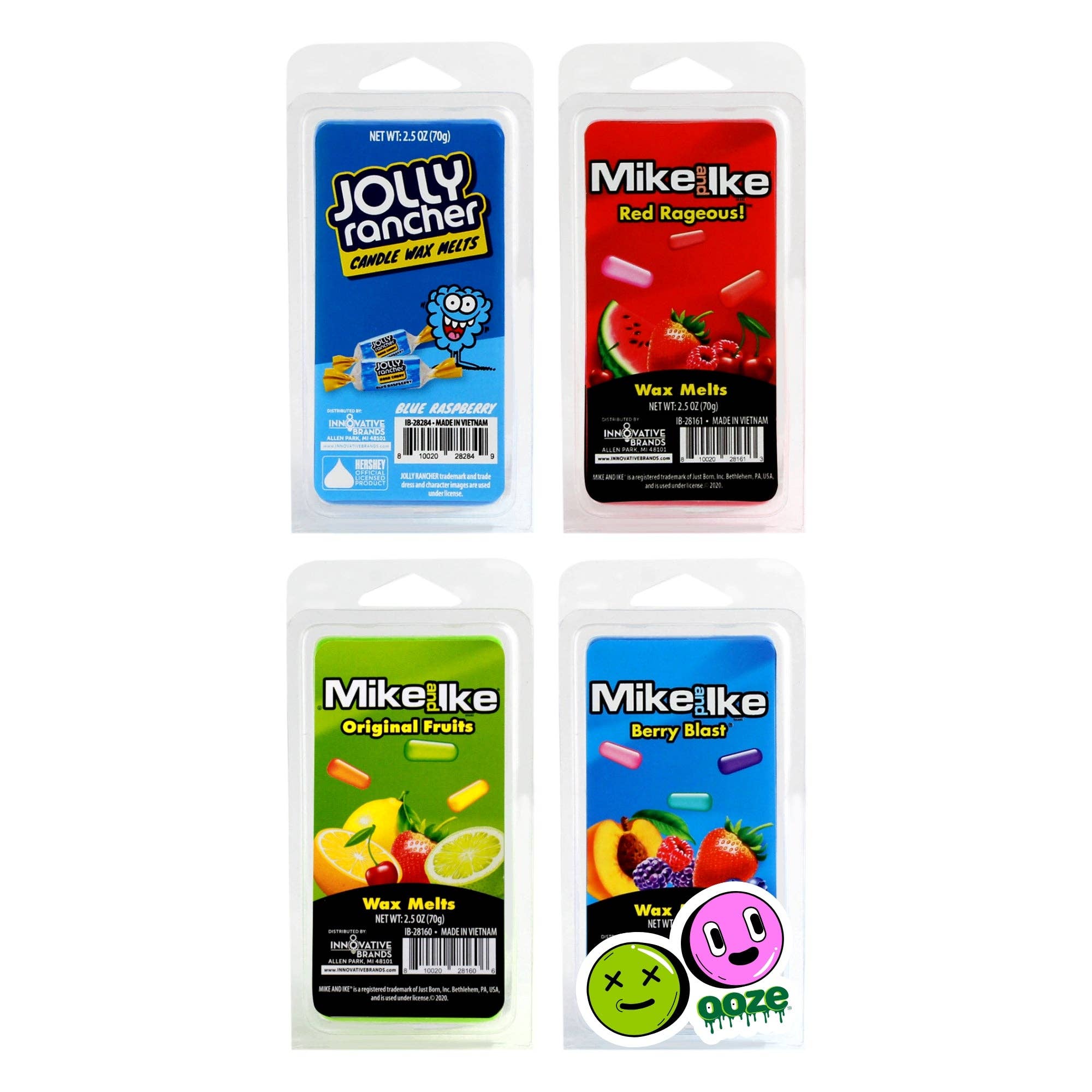 Officially licensed Hershey’s scented candles are an instant draw because they smell just like your customers’ favorite fruit candy! These 14oz Sweet Tooth candles feature three wicks, a lid, and are strongly scented just like the fruit candies on the label. This tiered POP display lets you sell more candles in the same amount of space. Each cardboard display piece is packed with 9 candles in an assortment of the 3 most popular fruit candy-scented candles. These branded retail displays legitimize your selection of candles and make them much more prominent on the shelf. SCENTS INCLUDED: Berry Blast Mike and Ike Watermelon Jolly Rancher Twizzlers PRODUCT FEATURES: Sweet Tooth Scented Candles 14oz Three-Wick Candles 9ct Retail Display Officially Licensed Scents Domestically-Sourced Scents Great Impulse Buy Items Holiday Gifts & Stocking Stuffers Pair with Snack Foods Cardboard Tiered POP Display