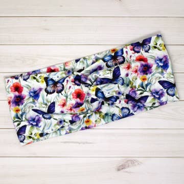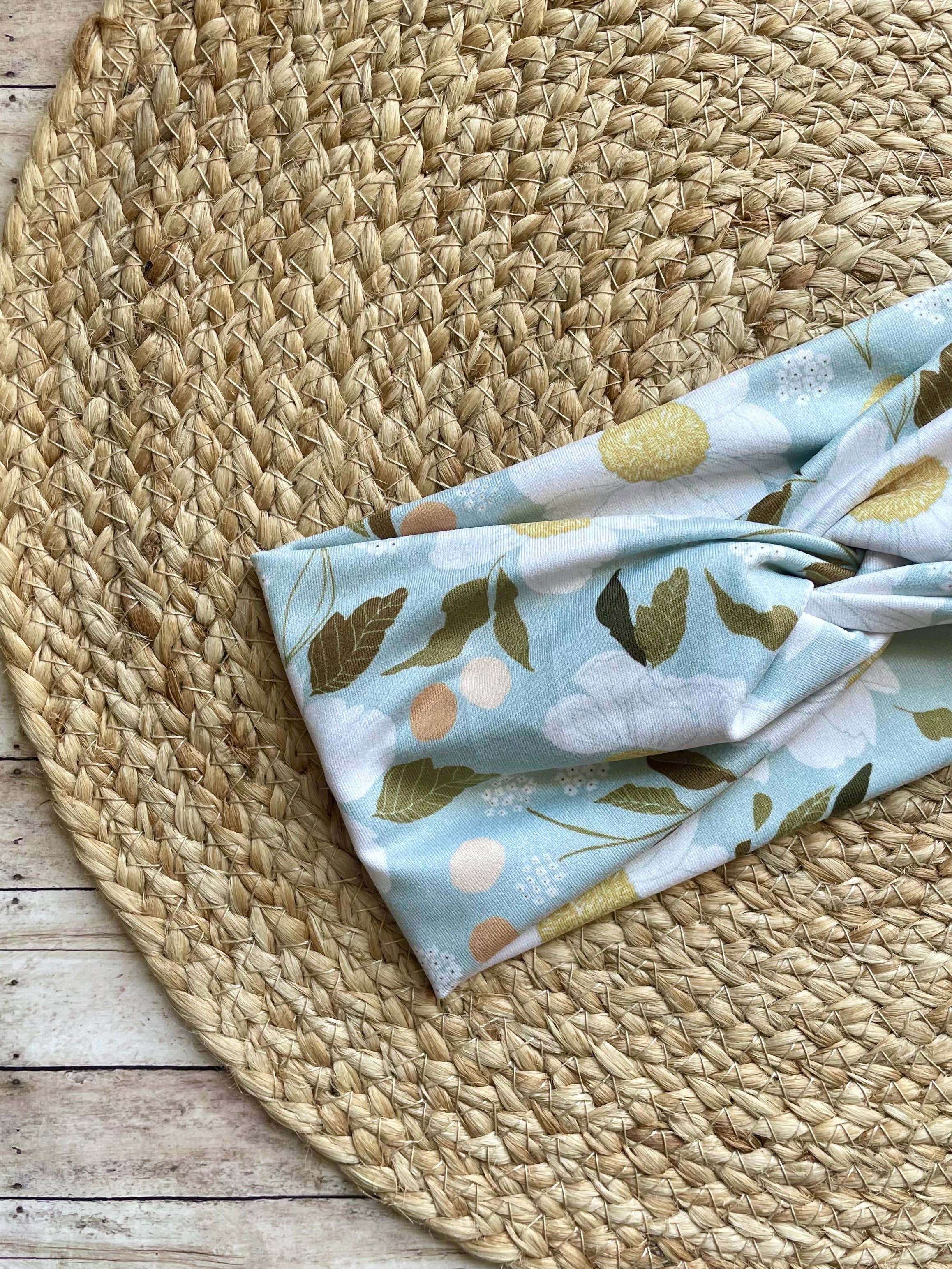 This soft knit headband is made from a designer polyester spandex fabric and is stitched to allow stretch. It is comfortable to wear all day! Exact patterns may vary. ~ SIZING: One size fits most teens / adults (19-20" around, 3.5 - 4" wide). ~ WEAR: The headband can be worn two ways - either with the twist knot on the top of your head, or with the knot underneath the base of your head. Works well either way! Headbands come with a display tag as pictured.