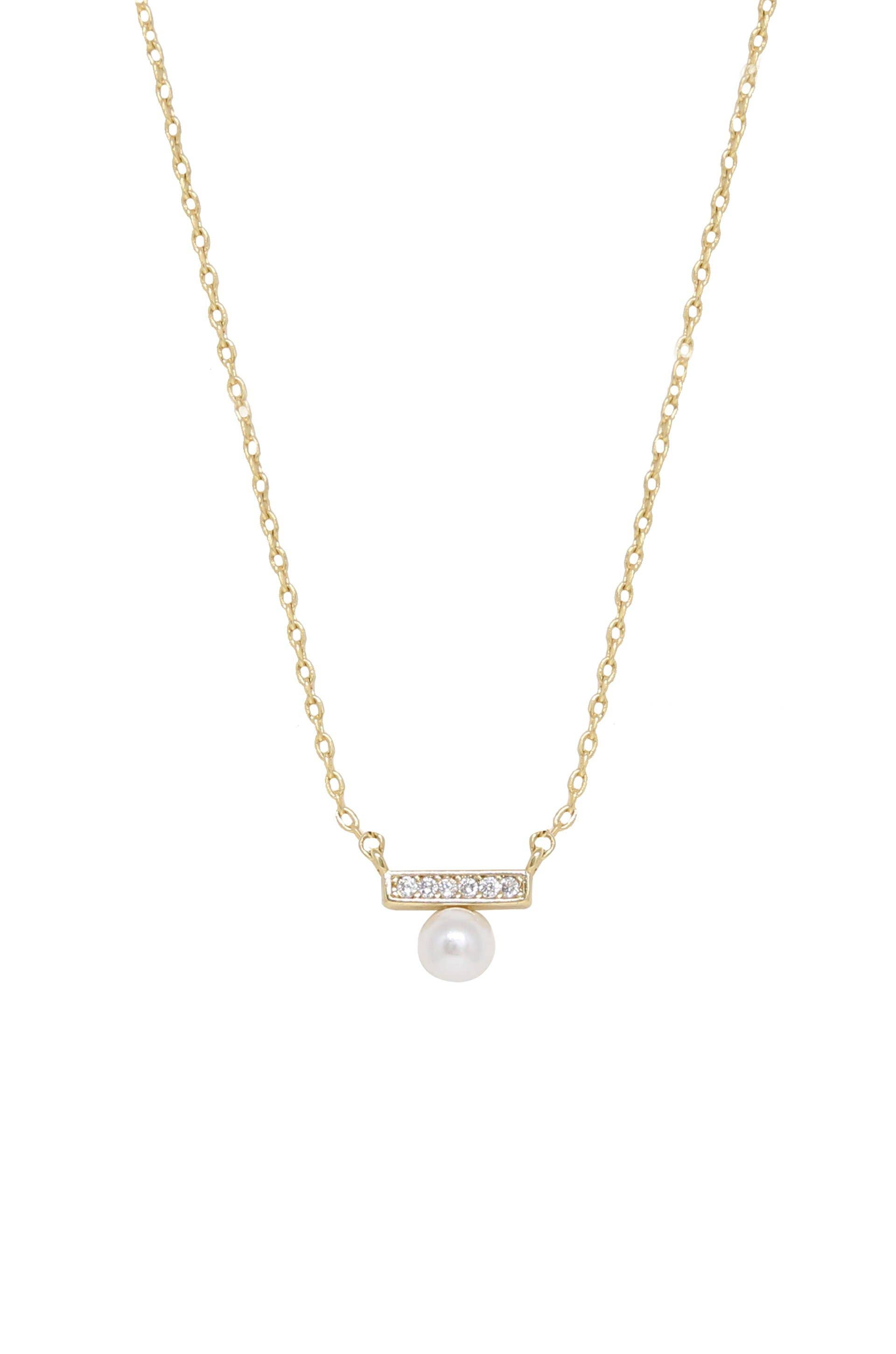15" curb link chain with pearl 2" extension with lobster claw closure
