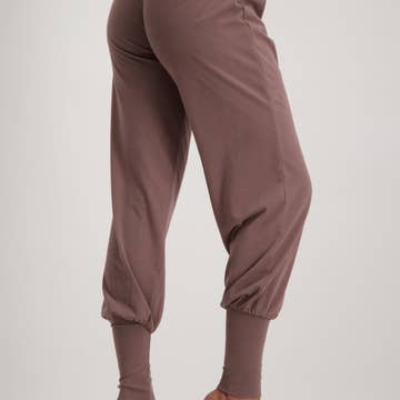 Our Svaha yoga pants are trendy, loose-fitting yoga pants that you will enjoy on and off the mat. These yoga pants are loose-fitting, but not bulky. The special fabric mix of sustainable bamboo and organic cotton feels wonderfully cool.