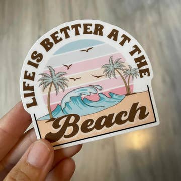 This is a durable vinyl sticker that measures approximately 3 inches by 2.2 inches at its widest points. This Stickers by Saylor design features a postcard for travelers with a lipstick kiss and a handwriting design that says ‘at the beach xo’ to recipient. This is a waterproof, weatherproof sticker, however handwashing is still recommended when placed on drink vessels such as Stanleys.