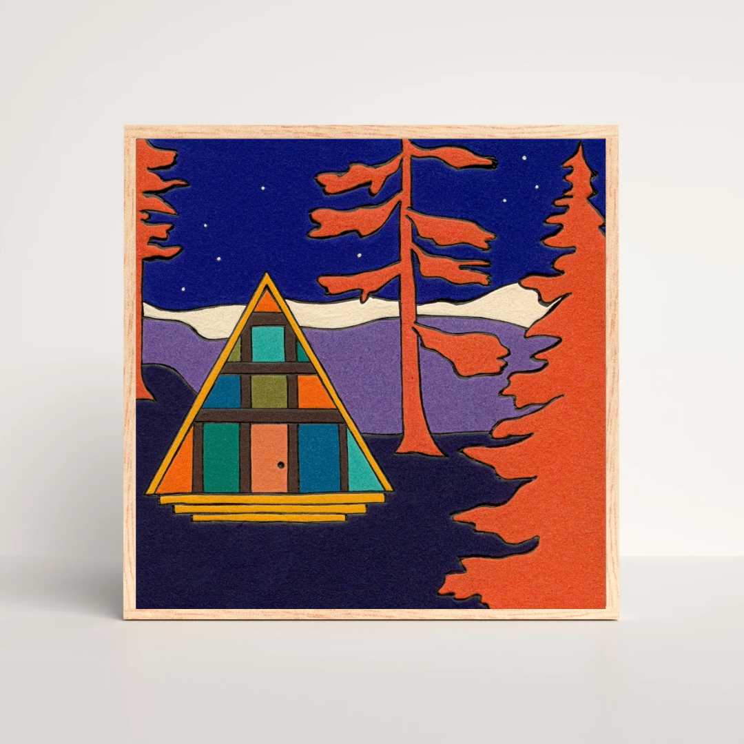 This 4.25 by 6 inch postcard is a sweet print of our original wood + fiber piece Observatory. It is printed on 16pt textured satin cardstock with love and care in Portland, OR, complete with a standard postcard back. We love how faithfully the high resolution print captures the essence of our woodburned, rayon-flocked acrylic painting! The textured cardstock brings the velvety nature of the artwork to life. It is hard to believe that the image is only two dimensional! It looks so realistic! The satin finish of the paper maintains the softness of the piece, while preserving the richness and vitality of the palette. We offer two packaging options. Choose to have each postcard individually packaged in a transparent art sleeve for extra durability, or choose bulk packaging without individual protective covers.