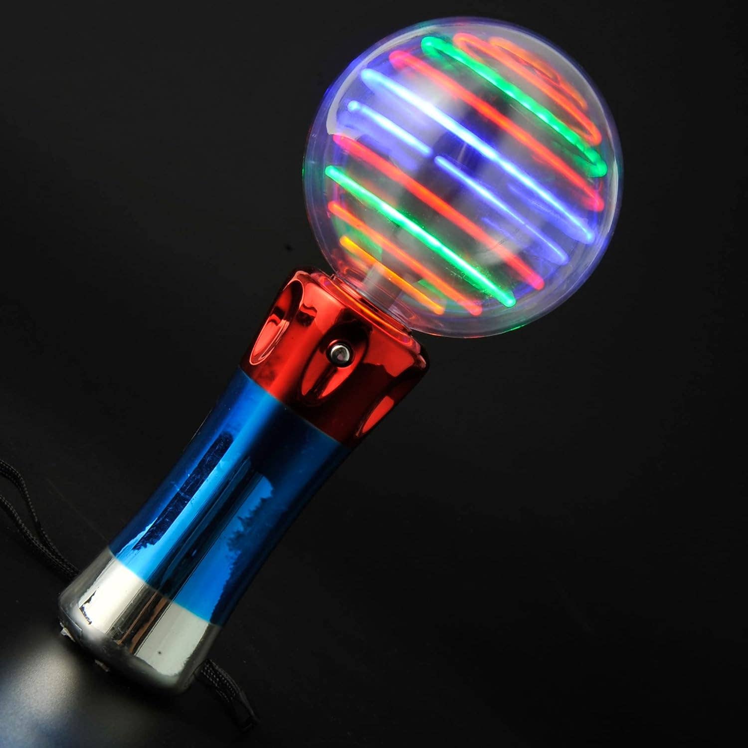 Christmas Smiling Santa Colorful Rainbow LED Glow Light-Up Music Noise Making Windmill Glow Stick Wand -NOTE: "We Wish You A Merry Christmas" Music plays on repeat, does NOT turn off independently. -Wand Dimensions: 14.8" * 2.25" * 1.75" -Pinwheel Diameter: 6.75" (Head Rotates 360 Degrees) -Pack Dimensions: 18" * 13.25" * 4.5" -Light and Music On/Off switch operates on 3 x AA batteries (Preinstalled, please remove pull-tab before use) -100% Plastic -CA Prop 65 Advisory -Packaging Details: Individually wrapped in clear OPP bag, then as whole in clear OPP bag.