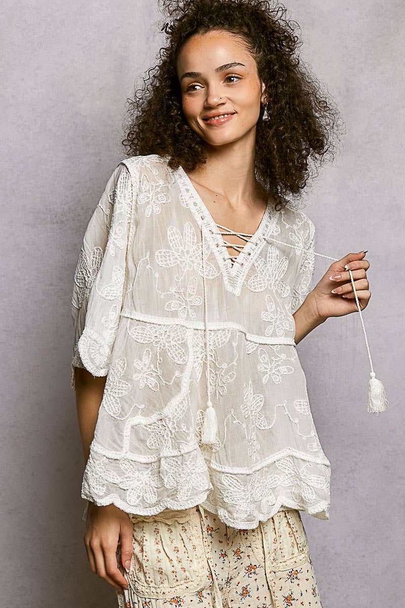 Baevely by Wellmade USA - Wholesale Blouse - Women's - Romantic Lace Ruffle Tiered Duster0