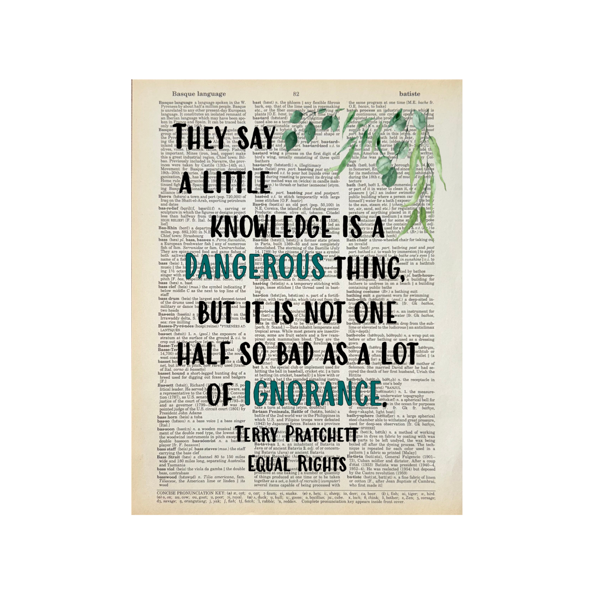 Books are political action. Books are knowledge. Books are reflection. Books change your life. Toni Morrison. Perfect for bookstores, gift shops, library shops, and more. For all Bookish Birds Prints: - Quotes are printed on real dictionary pages, so no two pages are exactly alike. - Patinas will vary across pages because each dictionary has slightly different coloration. - Pages are printed on random dictionary pages so the print will not necessarily be on the exact page from the picture. - Frame not included. - Pages come in sealed sleeves with cardboard backer. - Pages frame up beautifully. Size is roughly 8.25"x10.75" - $100 minimum purchase. - Free shipping on orders of $300 or more