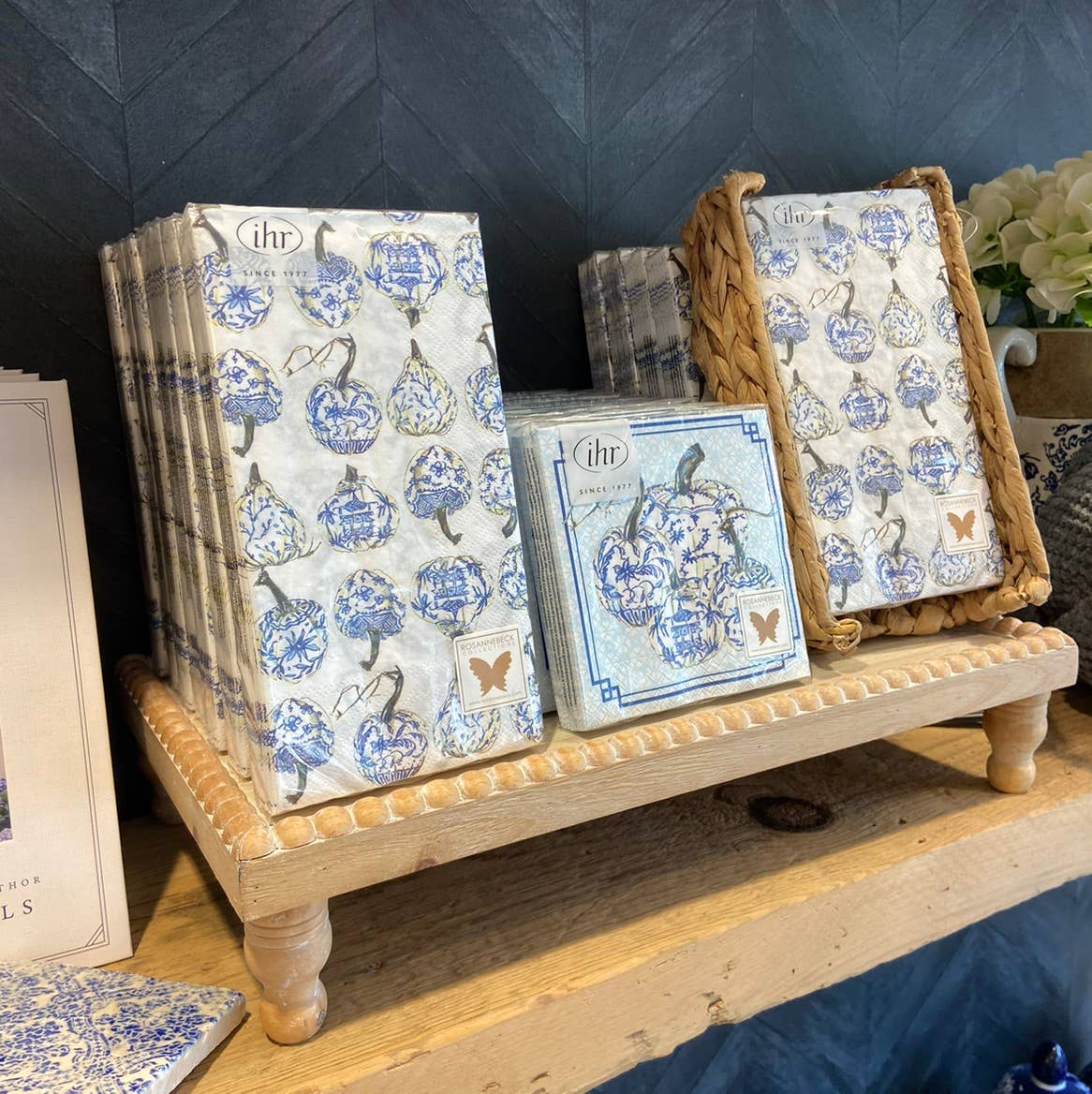 Velvet pumpkins and cocktail napkins are so cute!