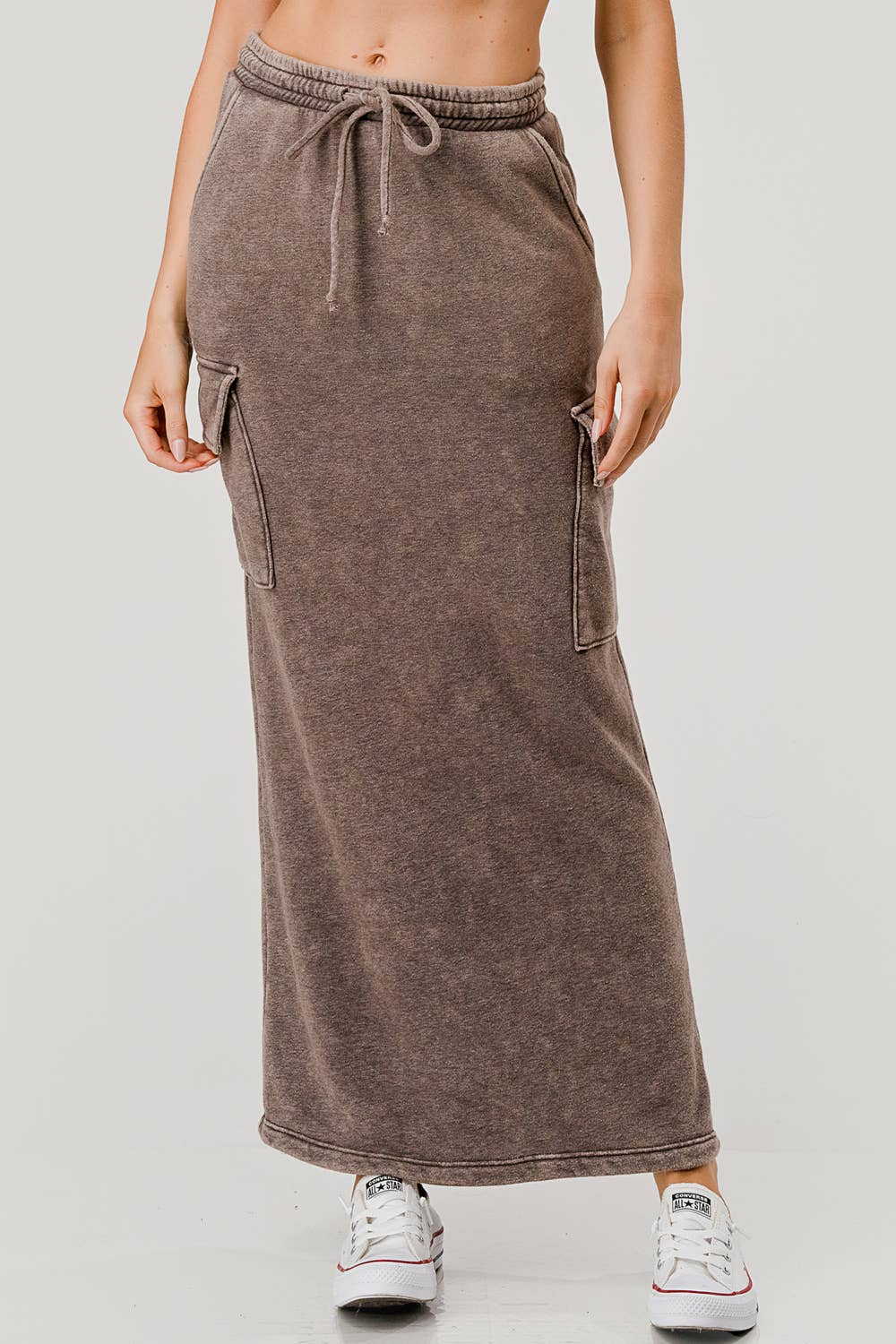 PLUS SIZED Mineral washed drawstring skirt