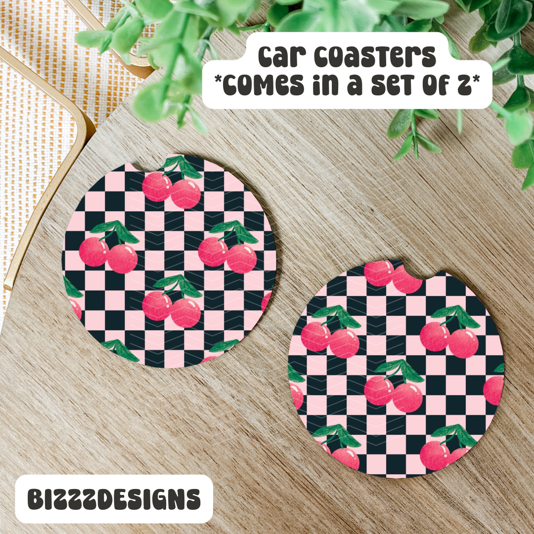 XO Wholesale - Wholesale Car Coaster - Women's - Black Checkered Beep Beep Neoprene Car Coasters0