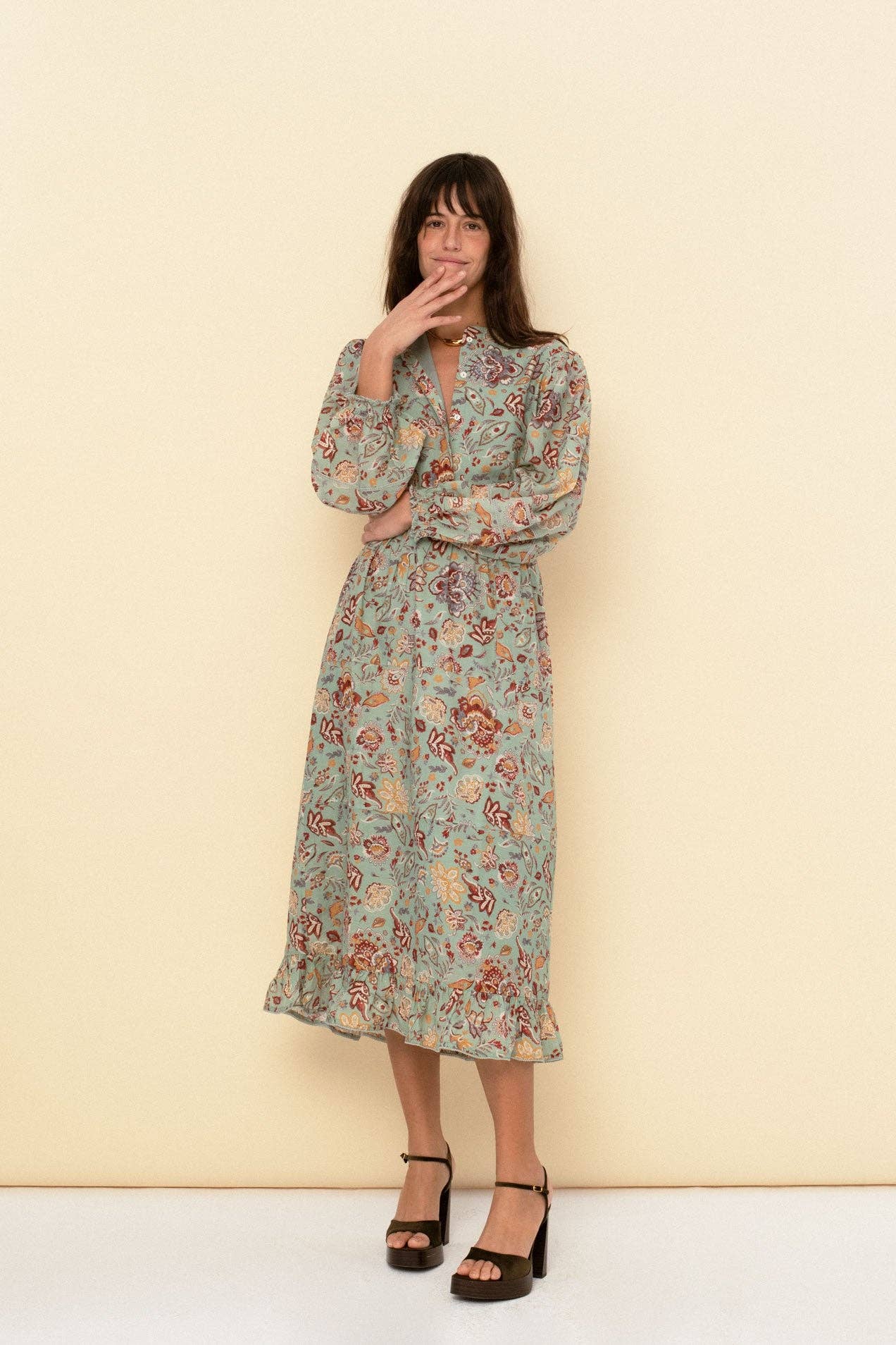 The Charlotte embroidered midi dress features delicate short sleeves finished with laces, embroidered detailing throughout and back quilted hem It features straight body that gives away to a A silhouette skirt 100% cotton SIZE & FIT Bego is 5´9 and it is wearing M REACH tested BSCI certified