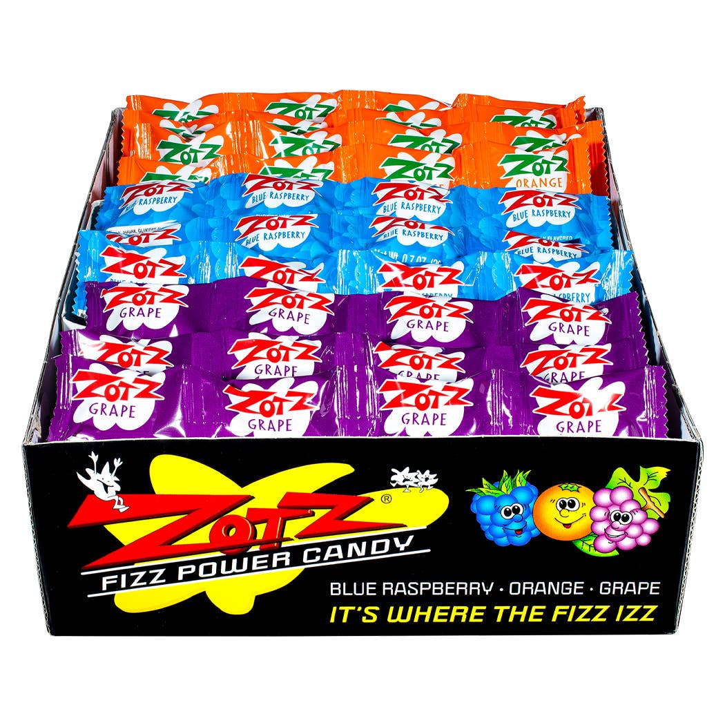 Add these fizzing flavors to your inventory immediately. A great seller in any environment. These nostalgic Fizzing candies are delicious and different. We carry plenty of different flavors and assortments. So, don't stop here, look for Zotz in single flavor peg bags and bulk assorted flavors also. Guaranteed to fly from the shelves.