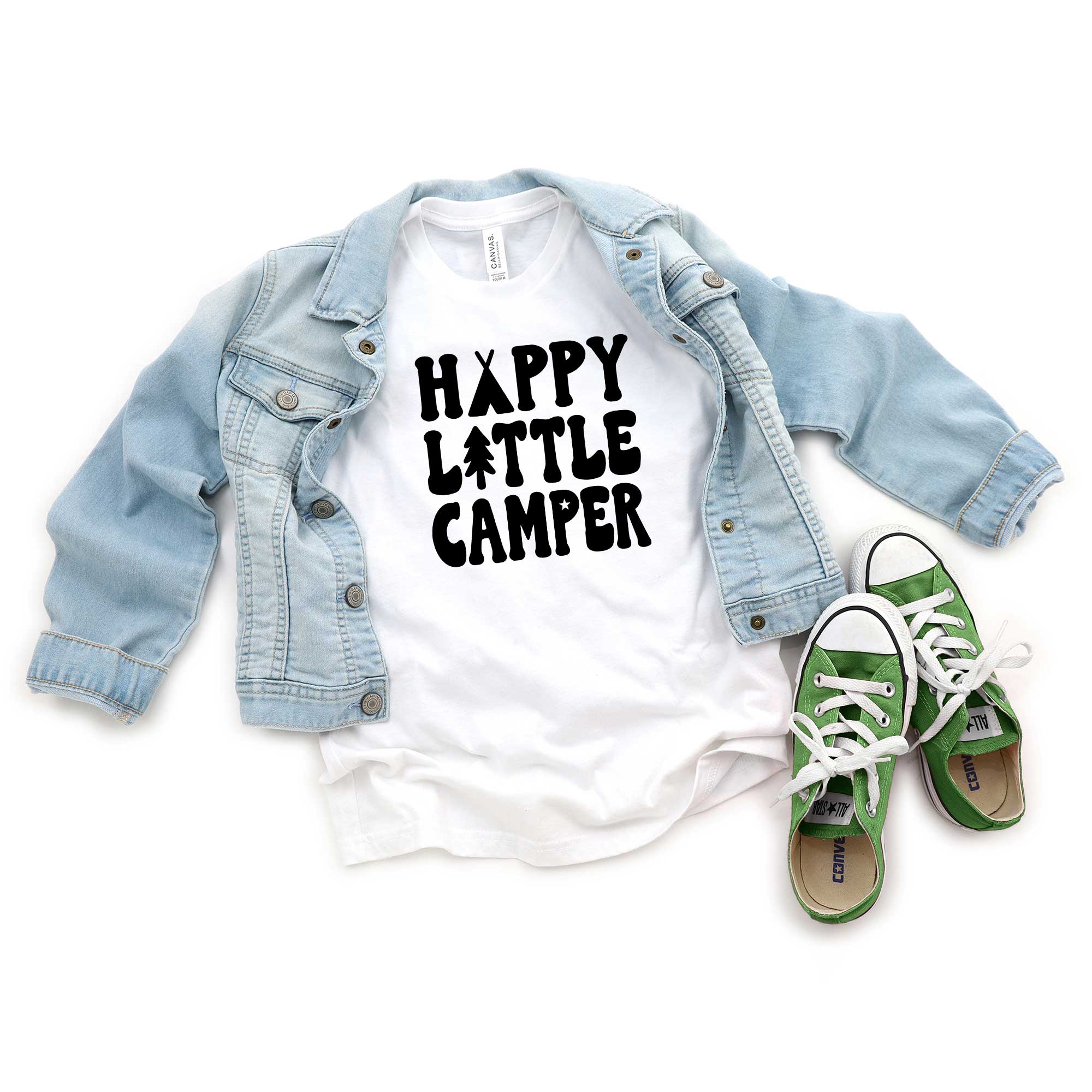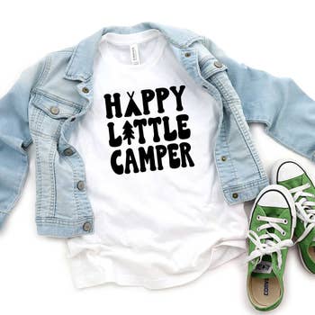 Bring that happy, peaceful calm you get from camping into your child's every day! Now your little explorer can be a "Happy Camper" while standing in line at the packed grocery store, waiting for a book at the library, or sitting in traffic on the way home. You might be doing chores, but your little one will always be camping. Pair it with a hat for mom or dad to really make a statement about your family's happy place!