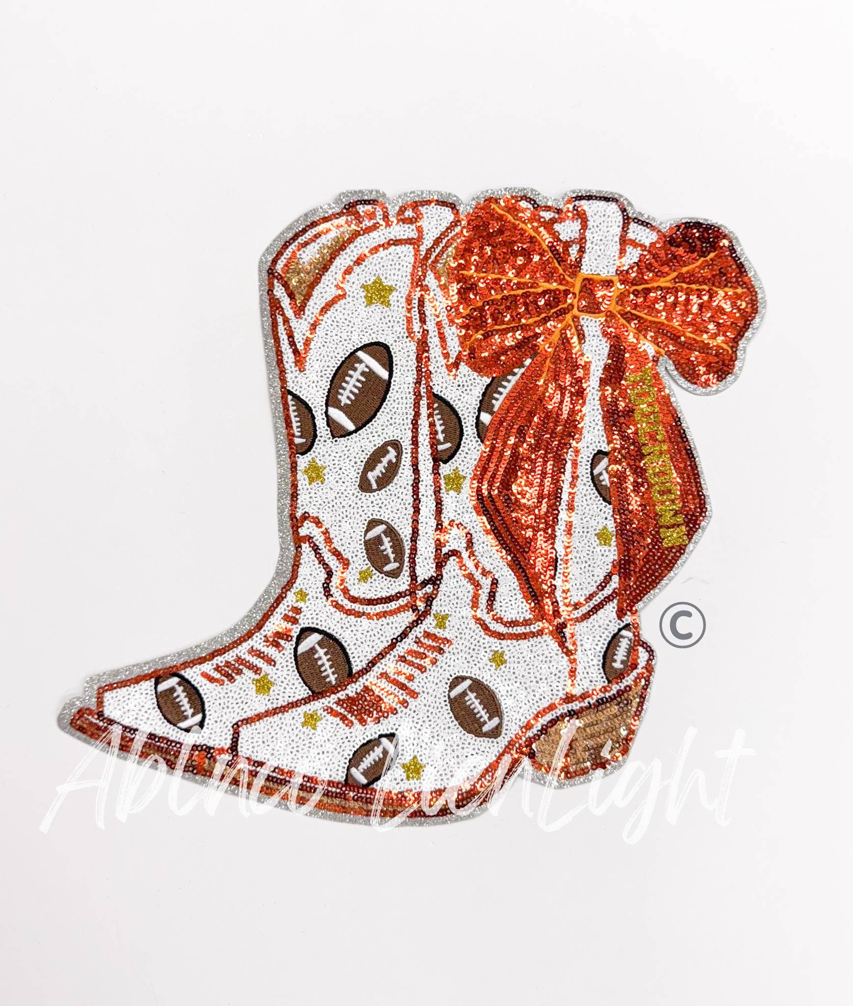 No reviews for Football Touchdown Star Red Bow Boot Sequin Patch - Large yet.
