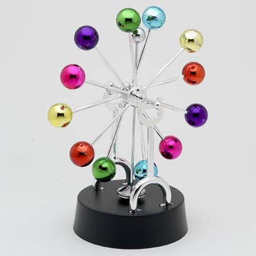 The asteroid perpetual motion desk gadget is a great piece of art for your desk. The sculpture has brightly colored metallic balls that will keep on rotating like a ferris wheel. It will keep you or anyone that watches it mesmerized for hours. Once it starts up, it keeps going until you stop it. Great desk decoration for home or office.