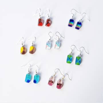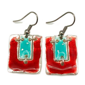 Long Triangle Glass Dangle Handmade Earrings