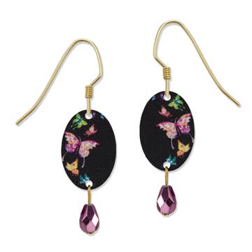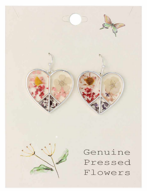 Bring home fresh cottage style with genuine pressed flower jewelry! These large gold butterfly earrings features pink, yellow, blue and red dried flowers set in clear resin on gold ear wires. Natural and vibrant vintage design with multicolor dried flowers. * Made in China * Genuine pressed flower necklace in gold * Garden inspired butterfly design * Measures: 2 x 1 1/4" * Materials: Gold Tone Metal, Acrylic, Genuine Dried Flowers