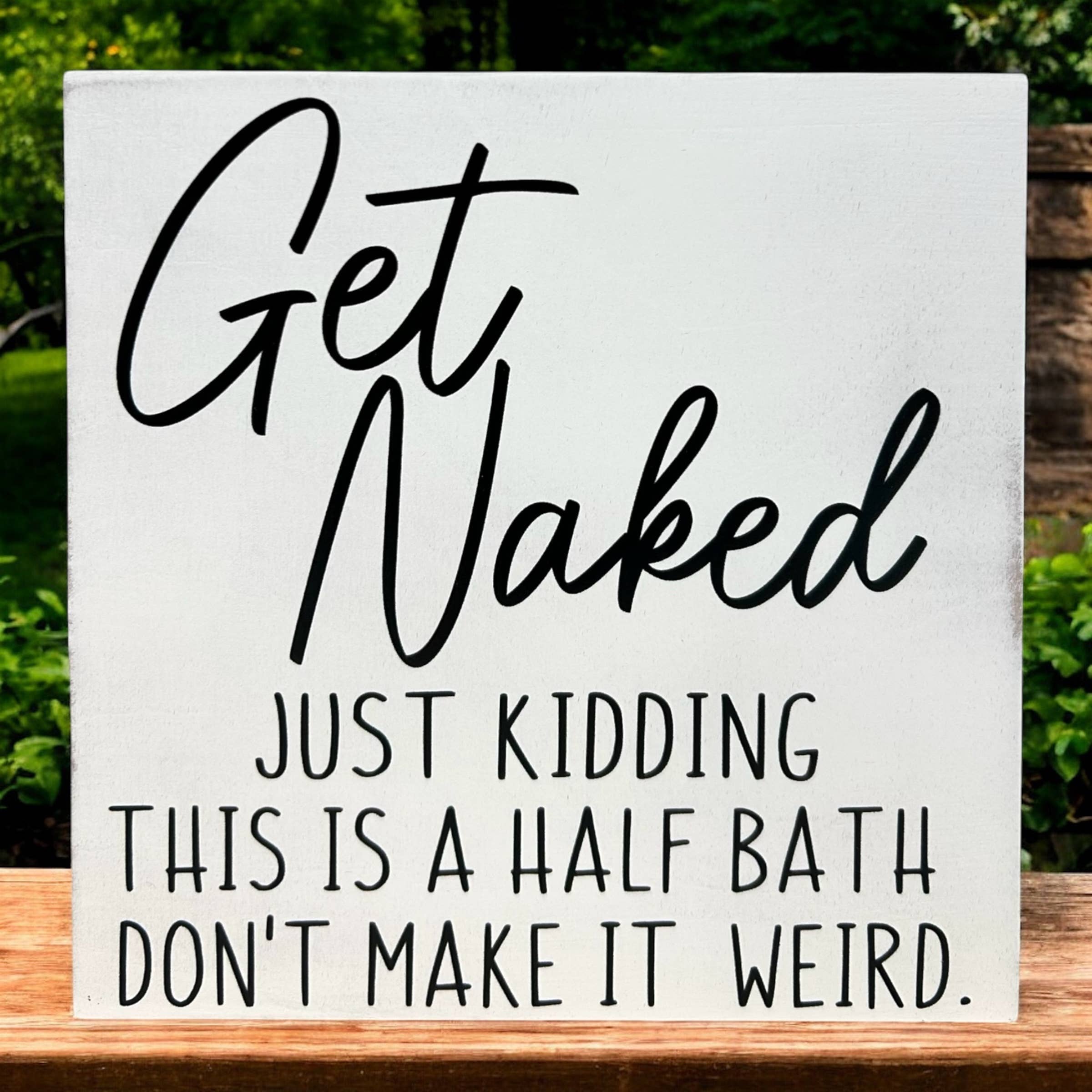 Small Box Sign Bathroom Decoration. All our signs are build into a wooden box frame with a rustic touch. Signs are hung directly off the frame or sit perfectly on a desk. Keywords: Bathroom Decor, Bathroom Signs, Bath, Bathroom Accessories, Home Decor, Shelf Sitter, Small Signs