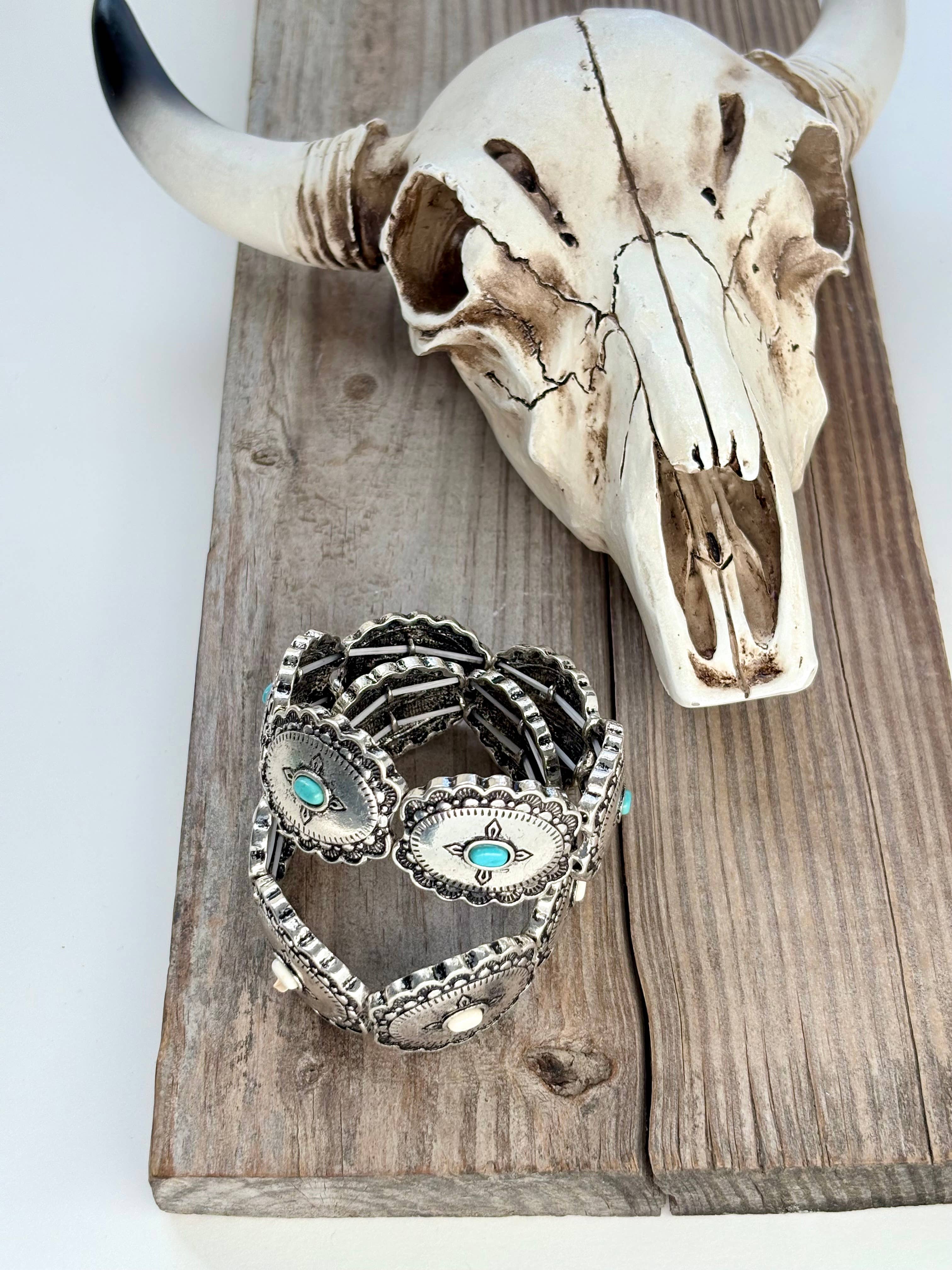 Longhorn Skull Bohemian Flowers Western Wide Cuff Bracelet
