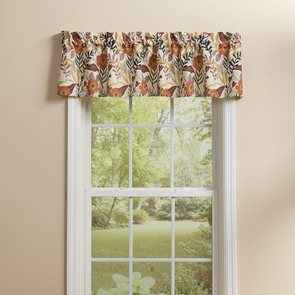 Introducing our exquisite Trenton Jacquard Valance, measuring 72" x 15.5", a perfect blend of elegance and rustic charm. This valance features a sophisticated jacquard weave that beautifully combines nutmeg, black, and red hues, creating a striking visual appeal that complements any primitive or country-style decor. Crafted for everyday use, its durable fabric ensures long-lasting quality while adding a touch of warmth and coziness to your living space. The intricate pattern and rich colors make it an ideal choice for enhancing the aesthetic of kitchens, living rooms, or bedrooms. Easy to install and maintain, this valance is designed to effortlessly elevate your home’s ambiance. Transform your windows with this timeless piece that embodies both style and functionality.