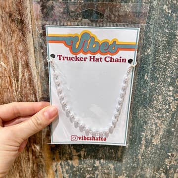 Vibes Hat Company pearl trucker hat chain available in gold & silver chain. Each chain has lobster claws so you can add extra flair to your favorite trucker hats! Comes individually packaged for resale. hats NOT included but sold separately.
