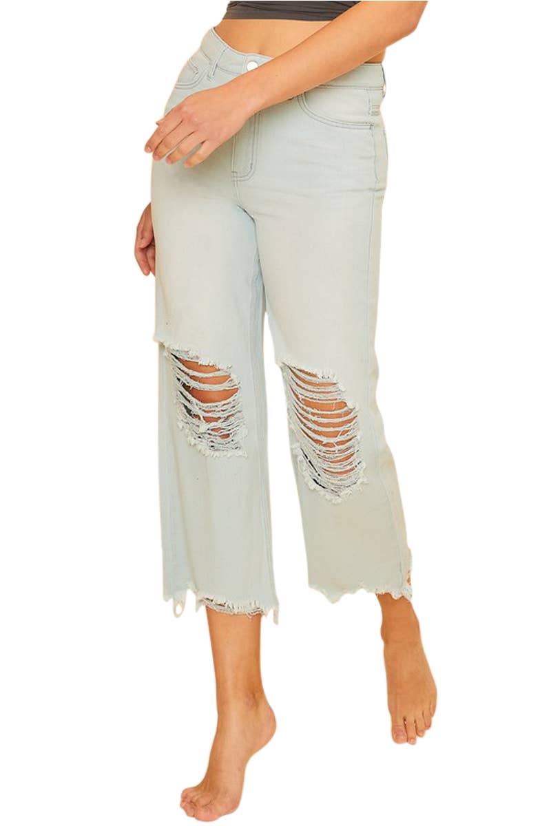 PLUS SIZE Double-Layer Destroyed Denim Pants