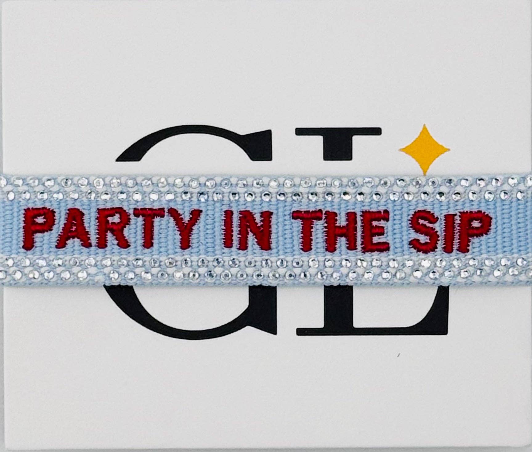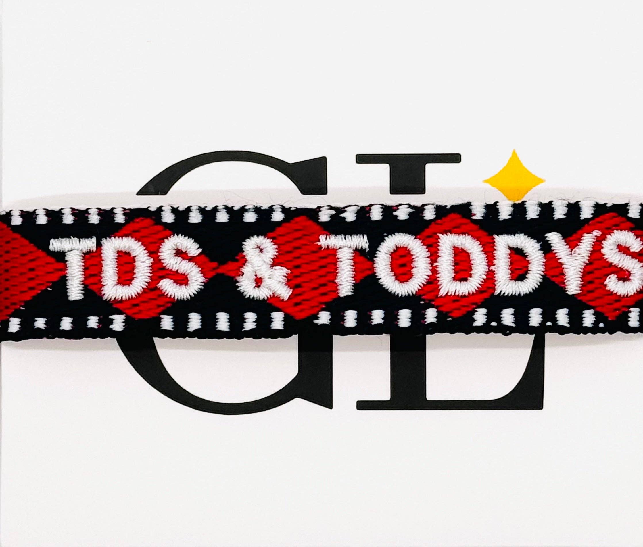 White with red trim bracelet with navy embroidered Reb Hot. One size fits all, self tie.