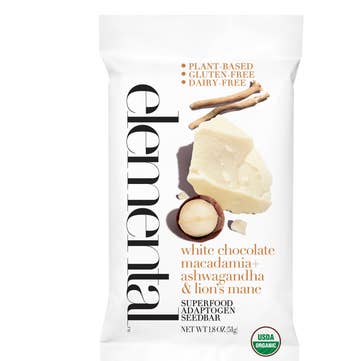 Organic nuts, seeds and adaptogens paired with creamy, dairy-free white chocolate and buttery macadamia nuts, this bar is a delicious, nutrient-dense way to fuel both your body and mind—helping you stay calm, focused, and energized throughout the day. "White chocolate macadamia ashwagandha is a fantastic combination: satisfies craving for sweet without feeling like an excessive amount of sugar!" Superior taste, quality and unique texture offers indulgent, nutritious snack, unlike any bar on the market. Refrigerated for freshness/storage and good on the go. All seedbars are 100% certified organic, non-GMO verified, certified gluten free, dairy free, soy free, egg free, Kosher. No seed oils, natural flavors, artificial flavors or sweeteners, gums. Sweetened with organic raw honey. Elemental Superfood is a female founded / mission based, small brand. A portion of proceeds goes to Autism research + resources. Thank you for spreading the goodness.