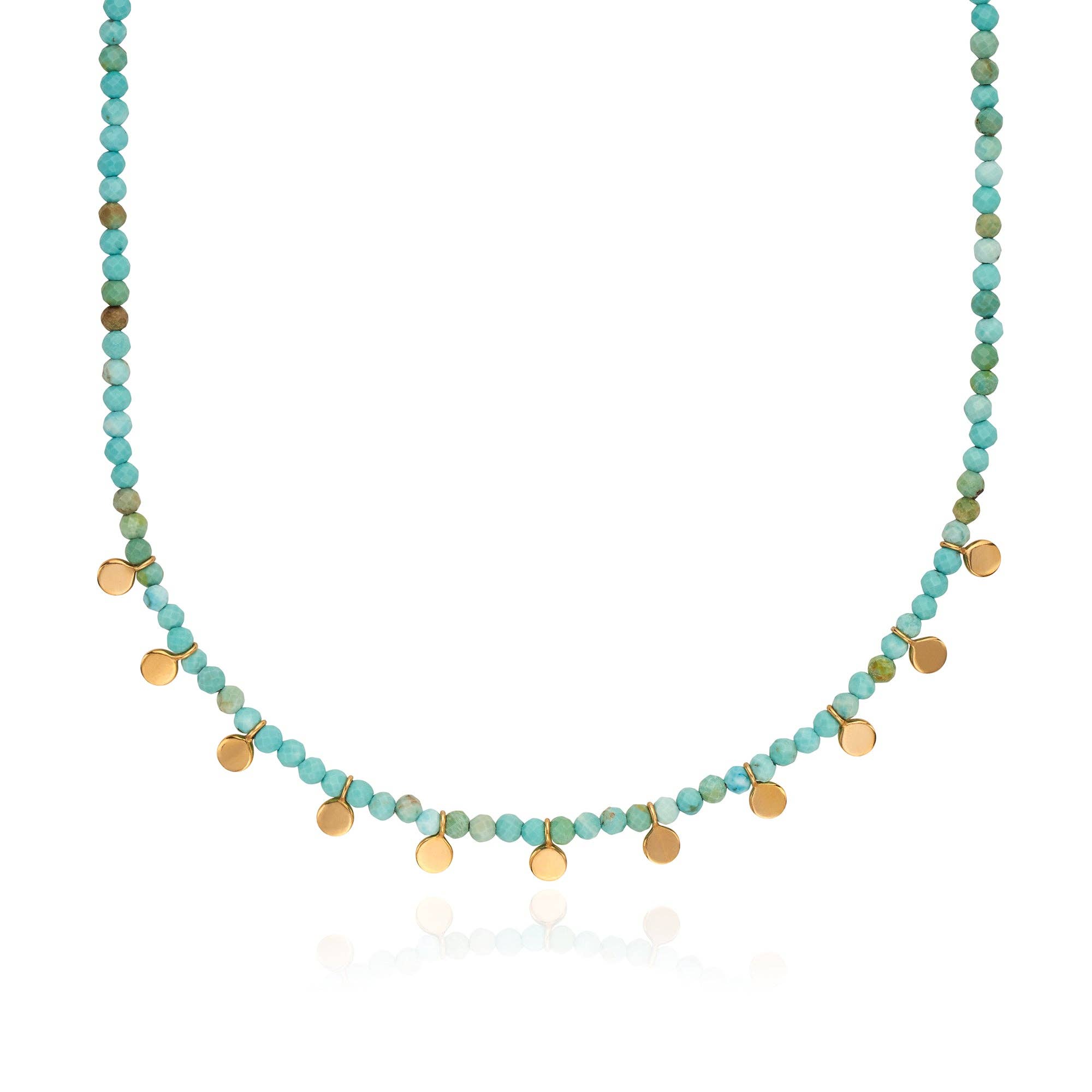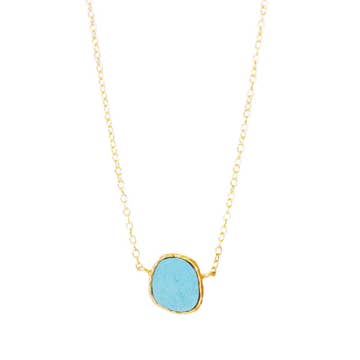 Your customers will be looking for a fresh take on the trends this season! Our Palladio Triple Strand Necklace in Turquoise Blue checks all the boxes! Playful elements come together with a refined edge, featuring a centralized gemstone and polished gold accents. The design balances whimsy with sophistication, giving it an effortless style that stands out. And who doesn't love three necklaces in one?! Our retailers tell us that our jewelry is consistently chosen by the girl that loves to spoil herself and "gets dressed" everyday. We have partnered not only with Anthropologie, Anthropologie Europe, and Neiman Marcus, but 600+ additional retailers nationwide, and we’d love to partner with you next! Hypoallergenic, plated chain semi precious stones, and mixed materials. Approximately 16-18" length. Women owned. Handmade in the USA.