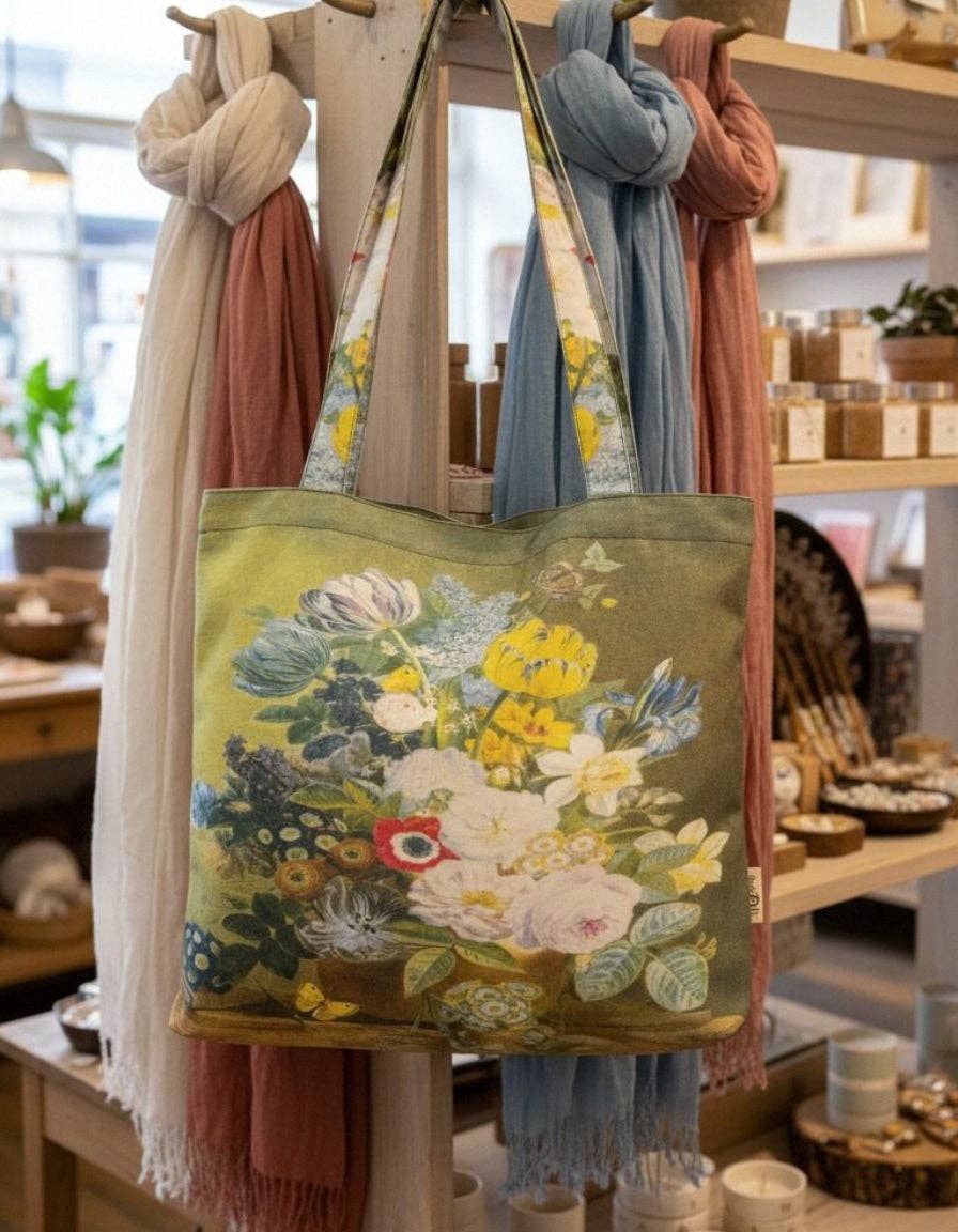 Bring a touch of art into your daily routine. Featuring Vincent van Gogh’s iconic works, this tote bag combines practicality with beauty, turning errands, work, or travel into a moment of inspiration. 16.5" Width 16"High The strap has a drop length of approximately 13.2 inches Crafted with premium canvas for durability and style The tote features a magnetic snap closure.