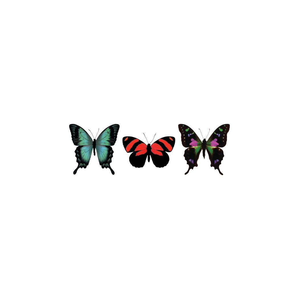 A classic for a reason. A set filled with butterflies for our dreamers. As seen on: Bella Hadid and Nicola Peltz Beckham. -EASY TO APPLY WITH JUST WATER -HAND-DRAWN DESIGNS -VEGAN INK -CRUELTY-FREE INK -NON-TOXIC INK -WATERPROOF INK -SIZES RANGE FROM ½ INCH TO 2 INCHES -MADE IN THE U.S.A. -LASTS A FEW DAYS UP TO 2 WEEKS