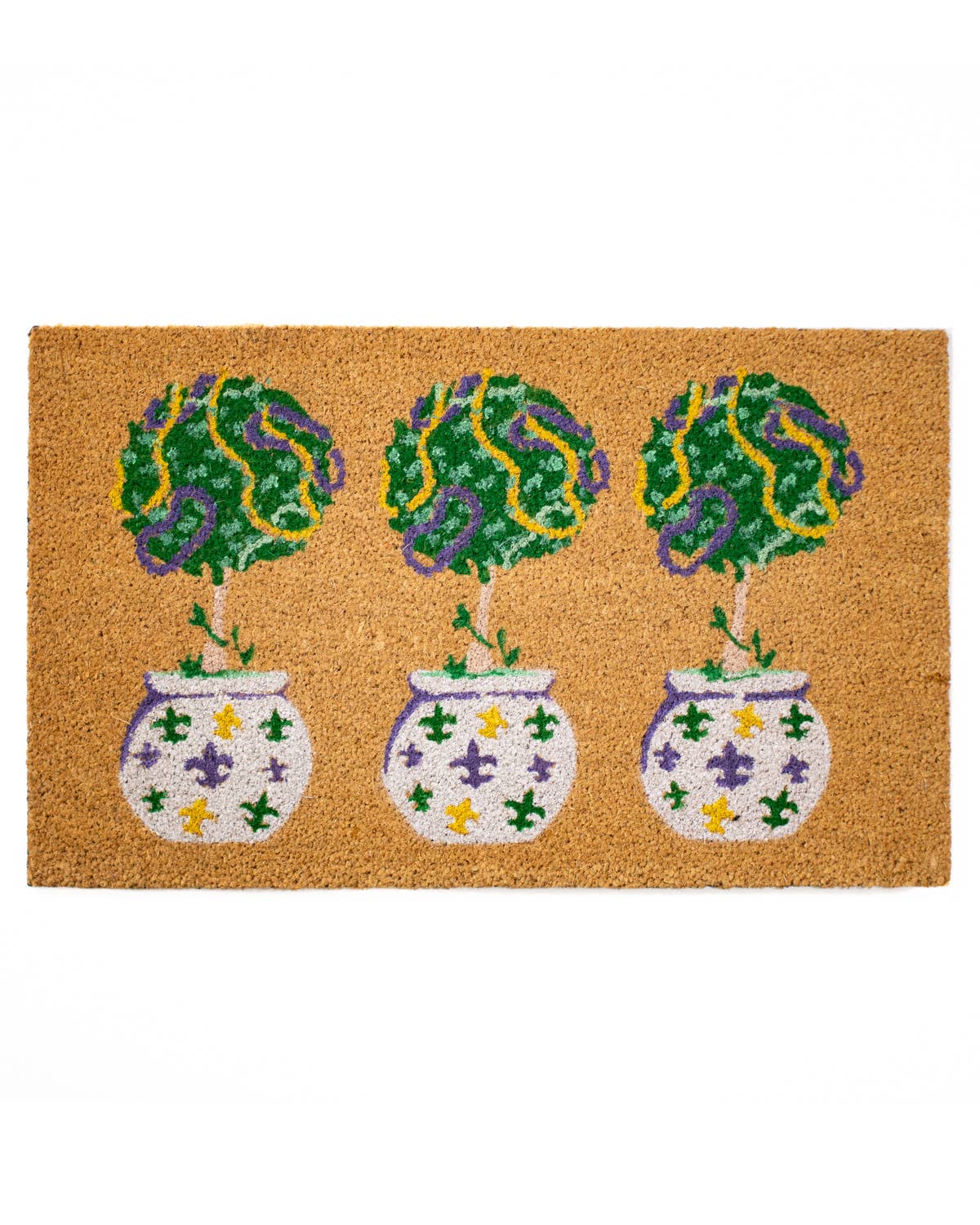Greet customers with the perfect mix of style and functionality using the colorful Tulip coir doormat. A charming addition to their Spring or Summer front porch entry that blends floral fun with a boho vibe! * Coconut Coir fibers with durable PVC backing. * Printed using exterior latex paint and UV sealed for durability. * Standard size: 18" x 30": Perfect for pairing with layering rugs as shown in photos. * Ideal for gift boutiques, lifestyle stores, and home decor retailers. Also great in botanical shops! *Black and white layering rug is NOT included with coir doormat. Please purchase separately.