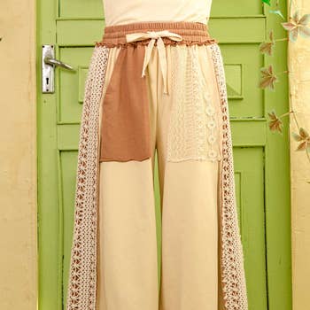 Elastic waistband color block solid knit pants SALE