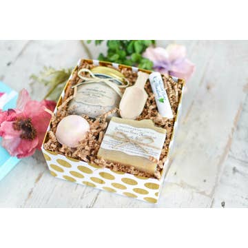 Best Seller – Perfect for Corporate, Client, and Employee Gifting This relaxation gift set is a best seller for corporate gifting and client appreciation. Affordable yet thoughtfully curated, it features three of our top-selling products packaged in a kraft gift box with natural crinkle paper and sealed with an “A Gift For You” sticker. Ready to gift and shelf-ready for retail, this box is popular with spas, boutiques, and businesses seeking self care gifts that feel personal and intentional. What’s inside: Calm Essential Oil Roller (10 ml) – A soothing blend of lavender, chamomile, clary sage, bergamot, and grapeseed oil to calm the mind and body Unwind Bath Salt – A botanical bath soak made with frankincense, cypress, and rose essential oil blended with calendula flowers, rose petals, and elderberries for skin nourishment and deep relaxation Oatmeal Bath Soak – A mess-free oatmeal soak with organic oat flour, dried lavender, and rose petals to moisturize and comfort the skin Key benefits: Curated set of three relaxing products designed for stress relief and self care Popular for corporate gifts, employee appreciation gifts, and client thank-you gifts Affordable price point makes it a great bulk gifting option Ready-to-gift kraft box with sticker seal for easy presentation Crafted with high-quality essential oils in small batches Made in the USA | Woman-Owned | Small Batch Eco-conscious packaging with plastic free shipping whenever possible Ideal for: Corporate gifts, employee appreciation gifts, client thank-you gifts, wellness gifts, self care gift sets, relaxation gifts, spa boutiques, apothecaries, and wellness shops. Also popular for holiday gift sets, Christmas gifts, and small business gifting during the holiday season.