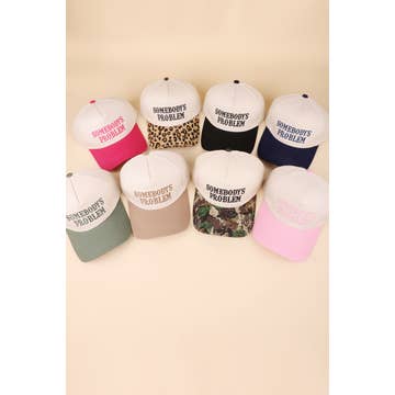 Introducing the "Somebody’s Problem" Embroidered Hat by Social Statement, a brand renowned for its unique everyday apparel and accessories. This stylish twill baseball cap, a popular choice among our women's range, is delicately embroidered to add a touch of personality to your outfit. Crafted in the vibrant college town of Fayetteville, Arkansas, this hat is more than just an accessory; it's a statement. Add it to your collection today!