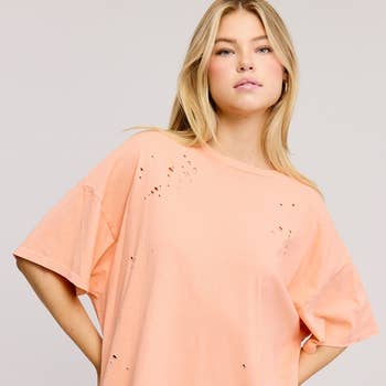 OVERSIZED PREMIUM WASHED COTTON TEE WITH DISTRESSED EDGES