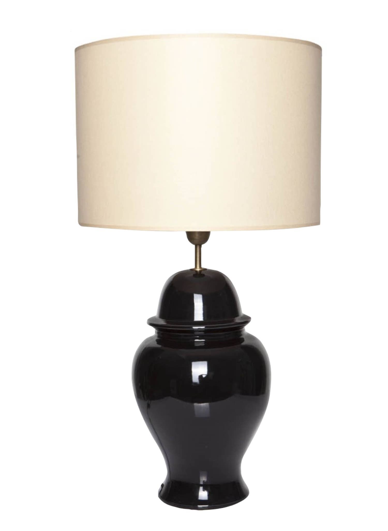 High-quality purple glass lamp including black fabric lamp/ gold interior Socket: 1x E27, max. 60 watts Overall dimensions: approx. 40 cm, height 60 cm Lamp base: approx. 35 cm, height 41 cm Lampshade dimensions: bottom 40 cm/ top 20 cm/ height 24 cm Material: lamp base in glass, fabric shade, stainless steel frame With its bright purple color, this lamp is a nice splash of color for the home. Made of hand-blown glass, the green glass lamp bathes the room in cozy light. The lampshade in black fabric, which is also handmade, is gold on the inside, which creates warm white lighting. We attach great importance to high-quality workmanship. That is why the table lamps in this collection are handmade within Europe.