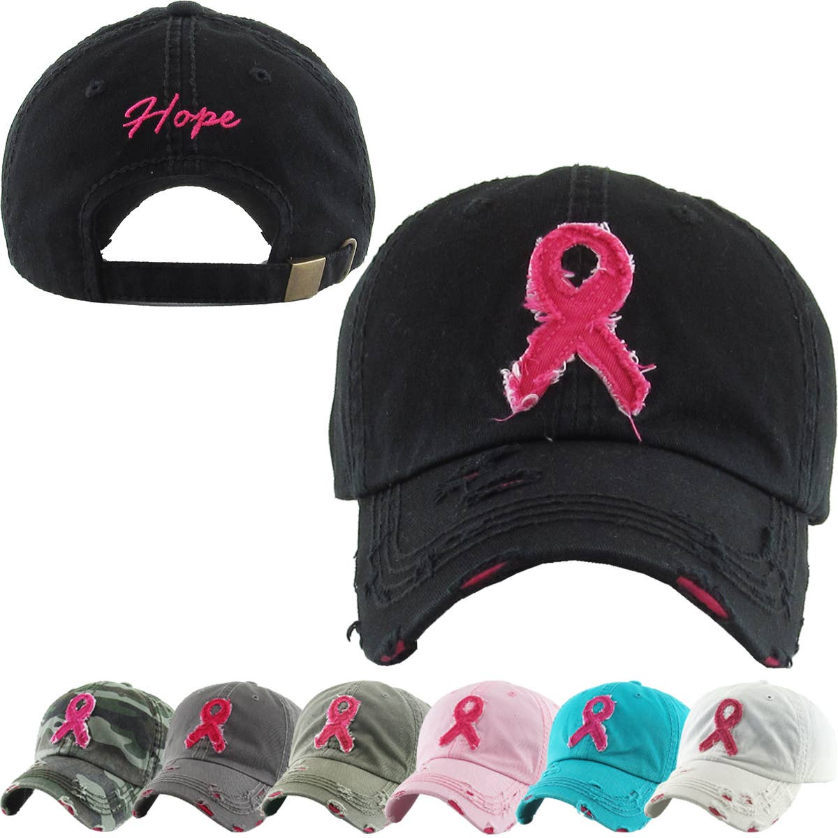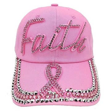 Bling Pink Ribbon Believe Message Baseball Cap • Crown Circumference : 23" (Adjustable) • Crown Height : 4" • Brim Height : 3" • Material : 100% Cotton