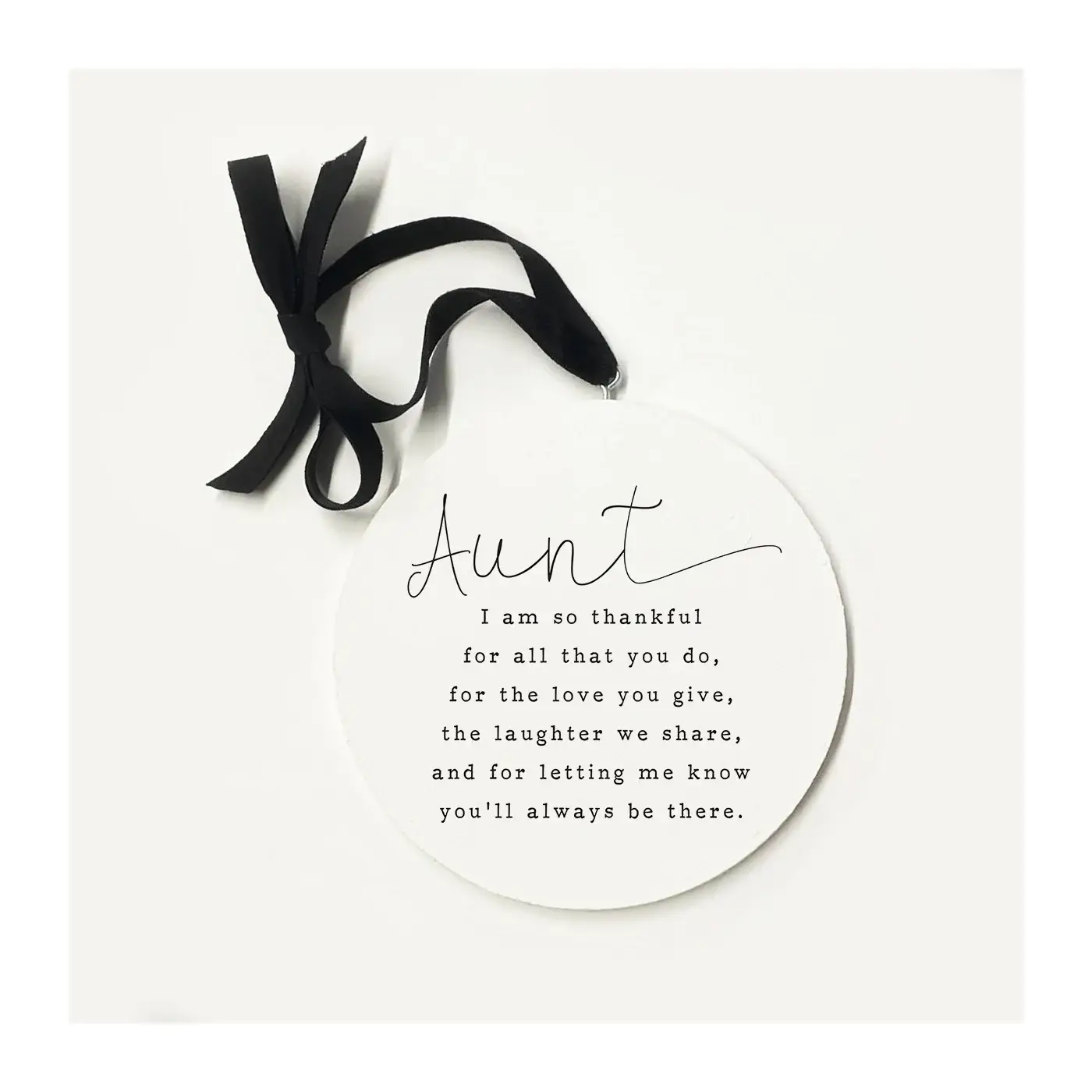 This unique 5-inch wooden double-sided circle can be displayed anywhere in the home with the beautiful attached ribbon. Made from birch plywood with a hand painted face and printed with UV cured ink. Easy to clean with a dry cloth.
