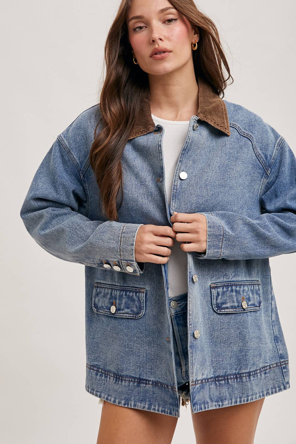 WHOLESALE PL4686 - CORDUROY BUTTON DOWN BARN COAT INNER PLAID